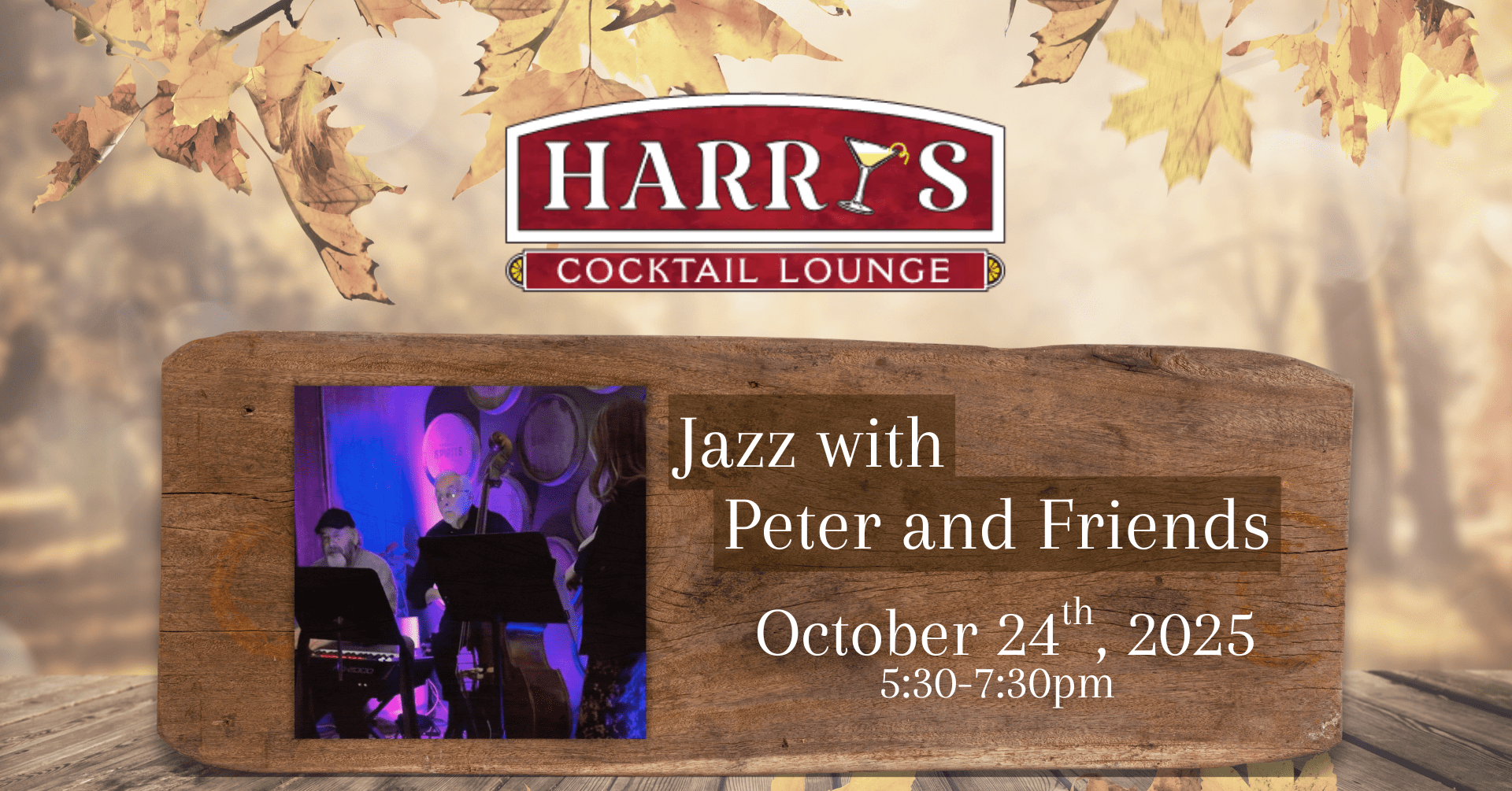 Jazz with Peter and Friends at Harry’s Cocktail Lounge in Quechee! By WFVR Music | October 24, 2025 When October 24, 2025 5:30 pm - 7:30 pm Add To Calendar Download ICS Google Calendar iCalendar Office 365 Outlook Live Where Harry's Cocktail Lounge at Vermont Spirits 5573 Woodstock Rd (Route 4 Queche Gorge), Quechee, VT Event Type Music Add to calendar DETAILS Date: October 24 Time: 5:30 pm – 7:30 pm Event Category: Live Music Event Tags: Easy Listen, jazz, Live Music Posted in Music