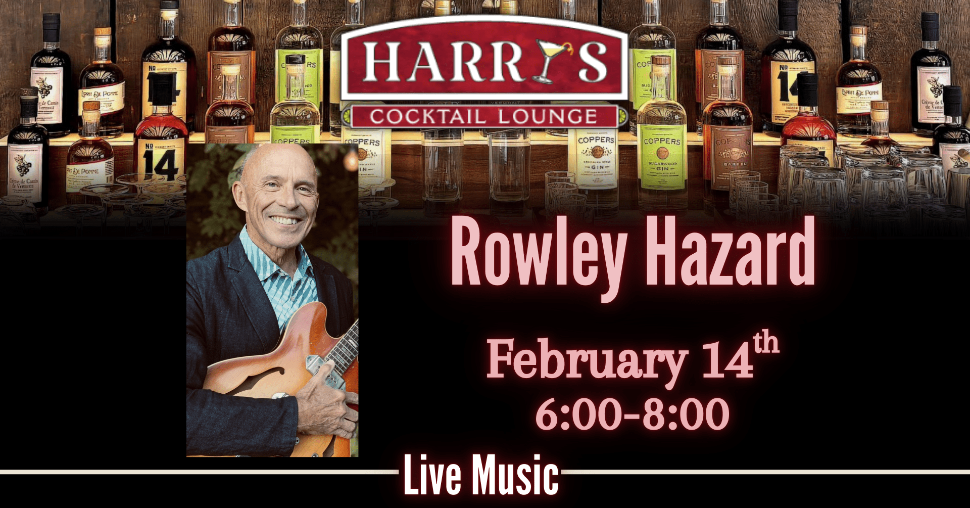 Live Music with Rowley Hazard at Harry’s Cocktail Lounge in Quechee!