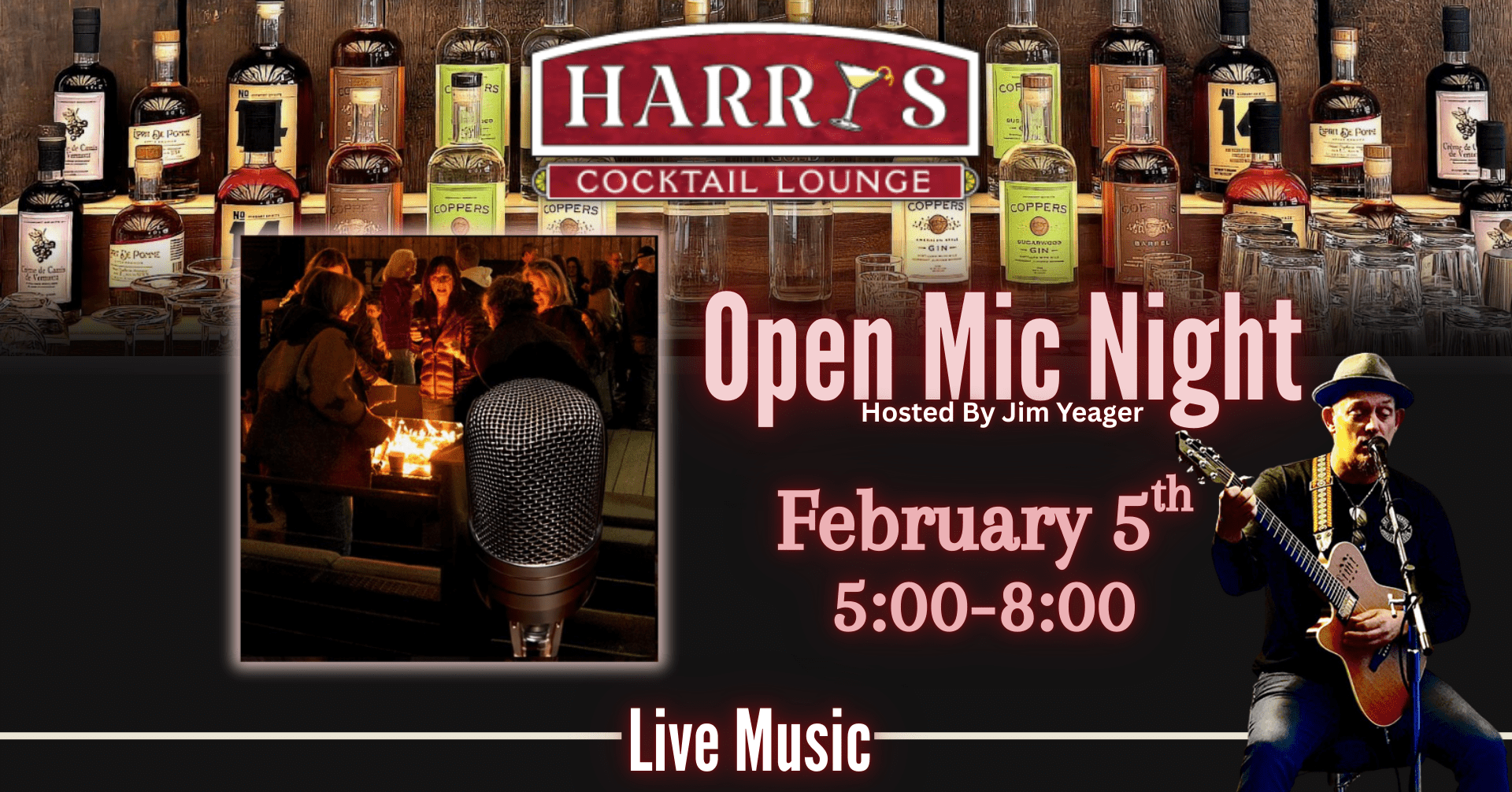 Open Mic Night with Jim Yeager at Harry’s Cocktail Lounge in Quiche!